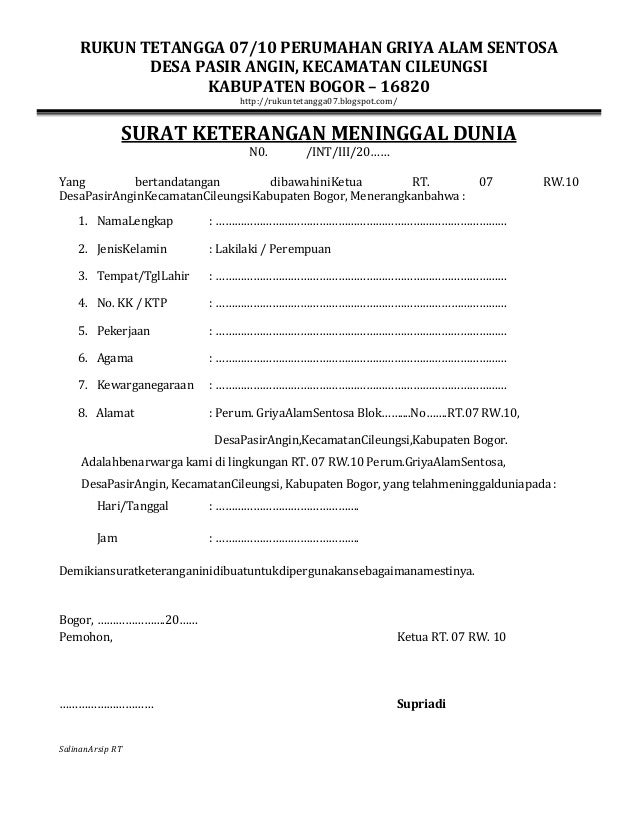 Surat Keterangan Meninggal Dunia via www.slideshare.net